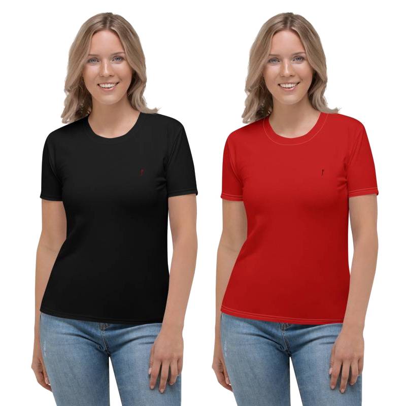 Plain Black & Red Round Neck Women’s T-Shirt Multipack